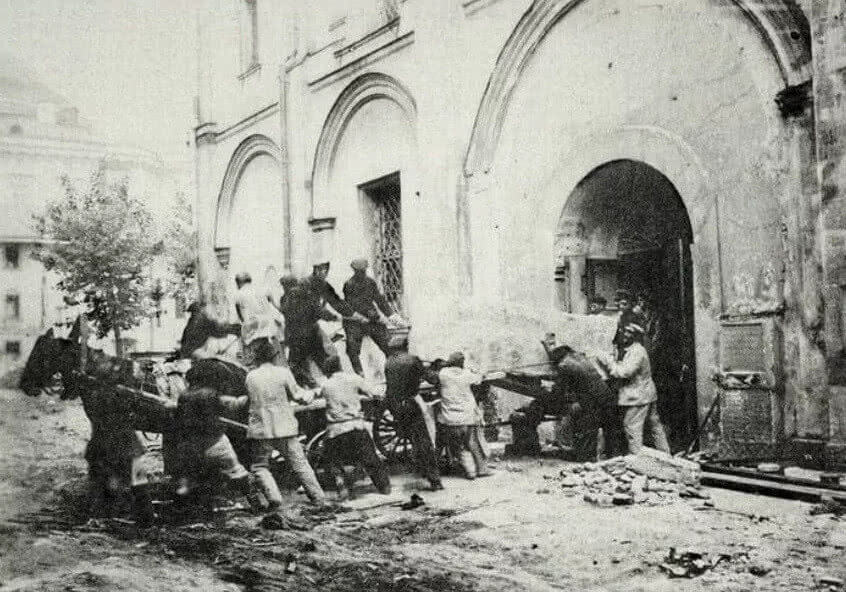Перенесение останков великих княгинь и цариц перед разрушением Вознесенского монастыря, 1929 год