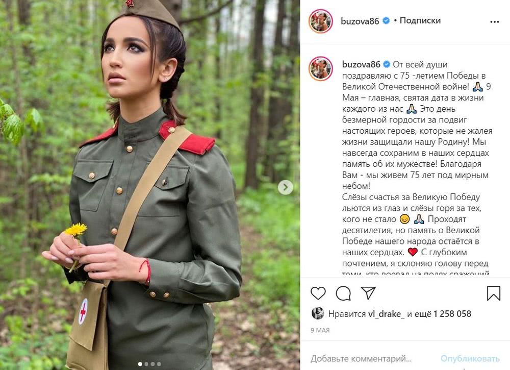 А иногда и обычный пост становится инфоповодом. 9 мая Ольгу затравили за фотосессию и видео в военной форме. Сейчас это один из самых популярных постов в её профиле
