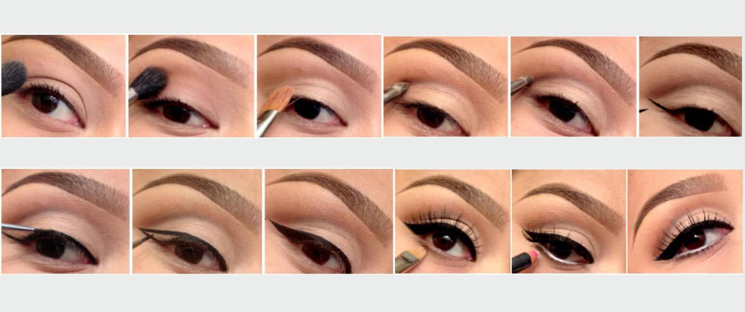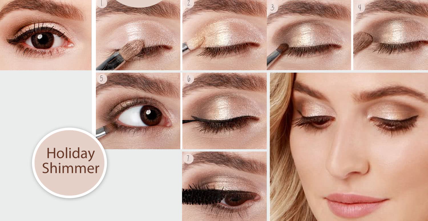 Посмотрите небольшое руководство по макияжу для голубых глаз, пошаговое фото: