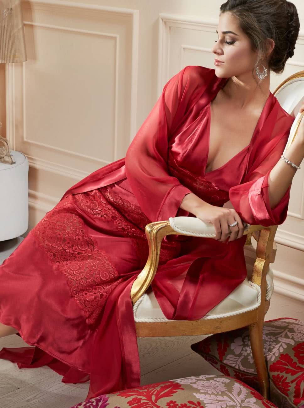 Наиболее элегантная модель, которую можно назвать доброй классикой. Длина пеньюара всегда макси. Ткань, из которой он шьется: бархат или шелк. Красивый пеньюар идеален для вечерней релаксации, чтения книги или простого отдыха. В черном пеньюаре такого фасона любая женщина станет роковой красоткой. Если захотите добавить пикантности образу, то посмотрите на красный длинный пеньюар с ажурными рукавами и глубоким декольте.
