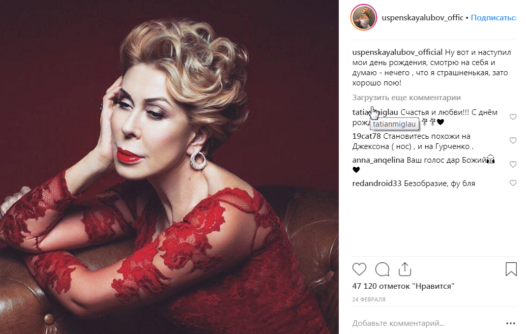 Естественно, что практически все ее поклонники, а у Любови только в сети Инстаграм около 700 тысяч подписчиков, возмутились такой оценкой своей внешности. многие заметили, что она великолепно выглядит не только для своего возраста, но и может дать фору многим и многим молодым коллегам. А уж ее стройной фигурке может позавидовать любая женщина.