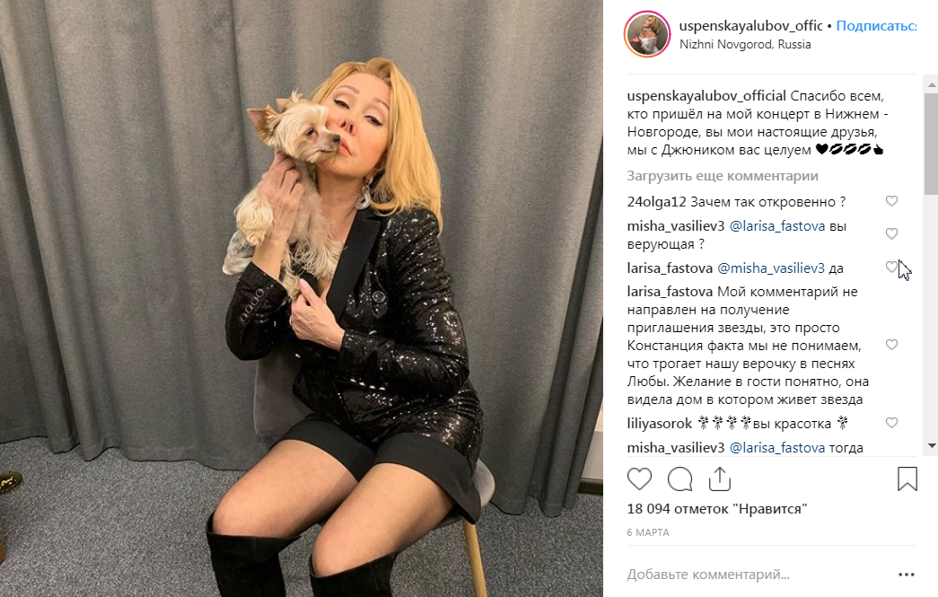 Стоит заметить, что Любовь очень любит эпатировать публику. не успели стихнуть споры, вызванные ее комментарием по поводу своей внешности, как звезда выложила на своей страничке новое фото с собакой, где она в мини-шортах демонстрирует красивые и стройные ноги. на другом фото, она в довольно смелом полупрозрачном наряде лежит на диване в откровенной позе.