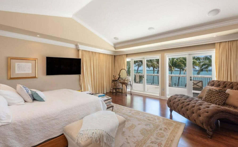 Дизайн выполнен в средиземноморском стиле. В доме всего 5 спален, у каждой своя собственная ванна. Все окна, которые выходя на побережье, панорамные, поэтому практически из всех спален открывается красивый вид на океан. Пара любит встретить вместе рассвет или полюбоваться вечерним закатом.