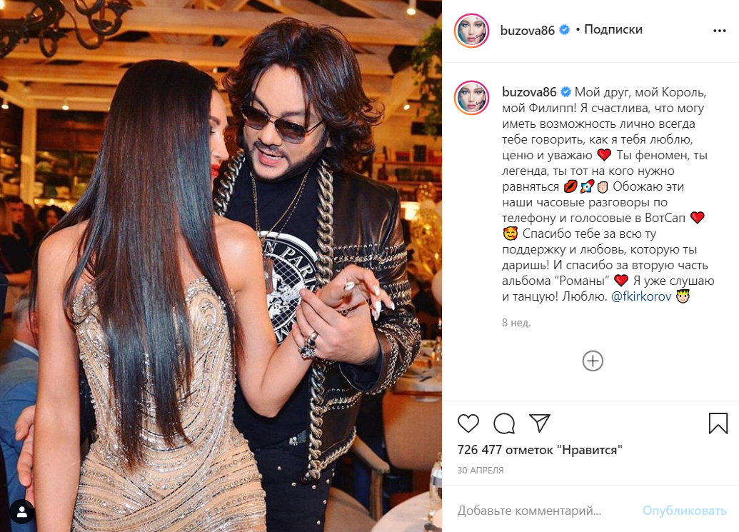 Время от времени в своём Инстаграме Ольга выкладывает фото с Филиппом Киркоровым и называет его своим любимым Филиппом