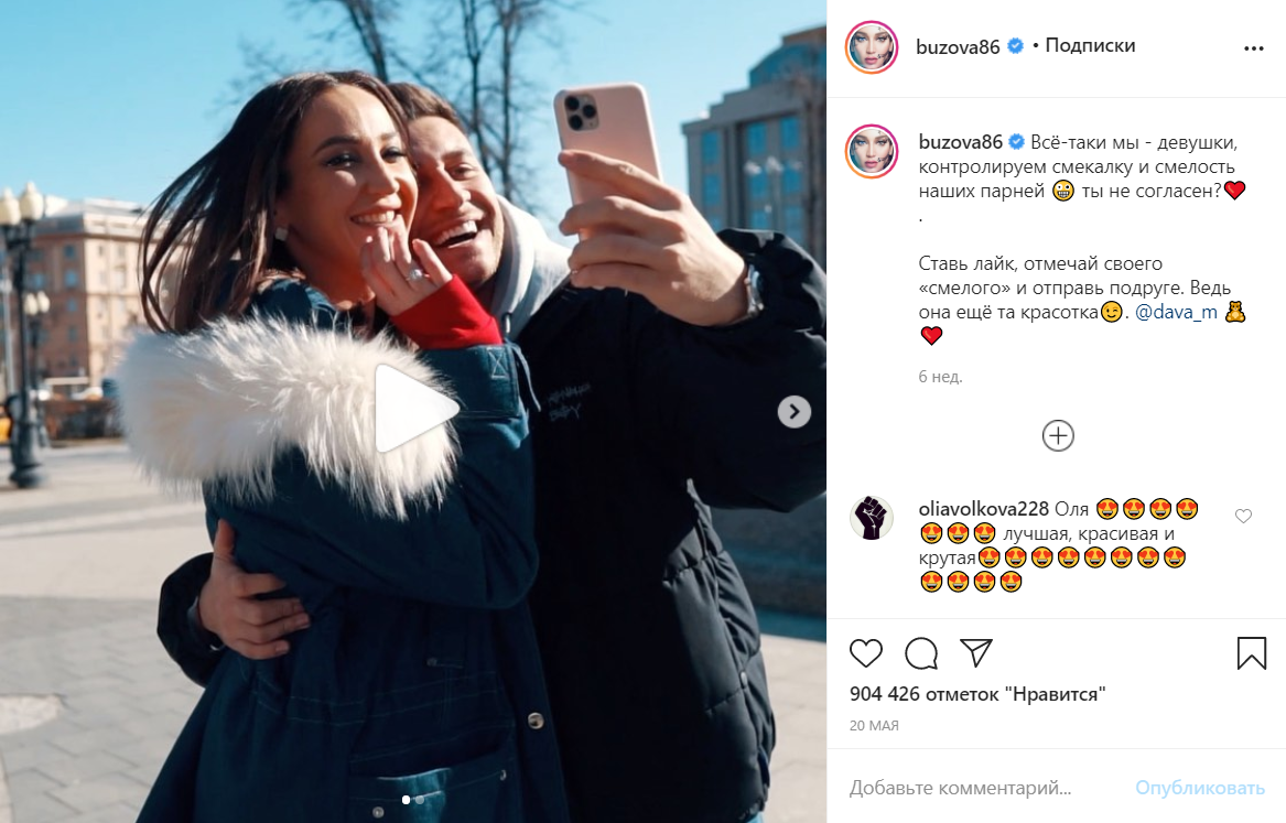 Посты Ольги набирают в среднем по 400-500 тысяч лайков, что является средним показателем активности в Инстаграме. Видео Бузовой смотрят 3-4 миллиона раз, но отметок «Нравится» здесь заметно меньше – всего 200-300 тысяч.