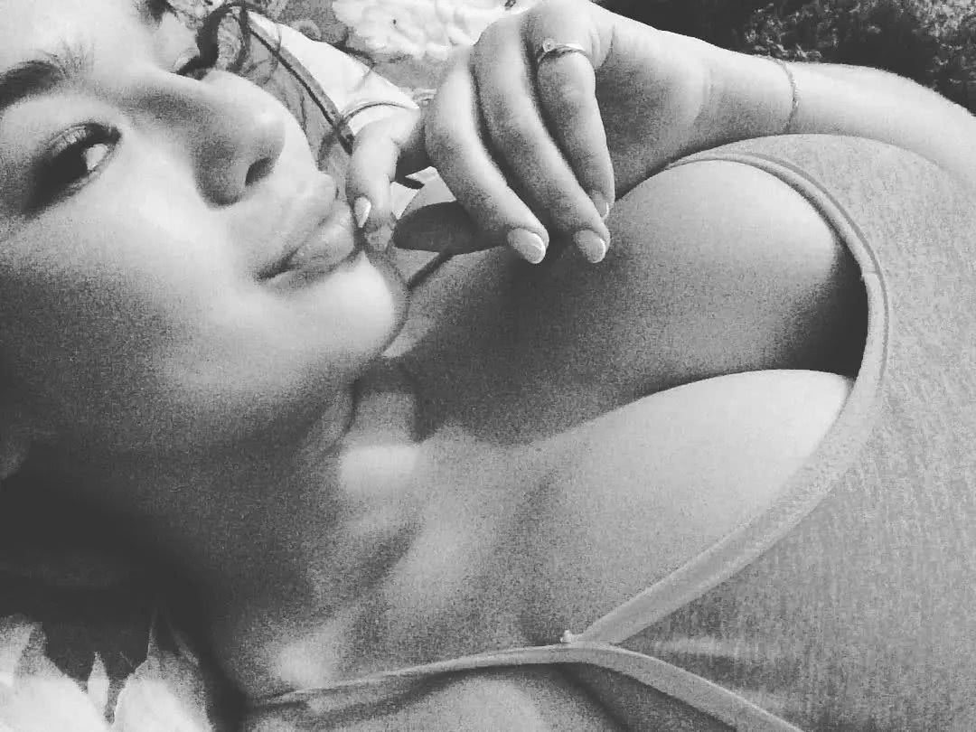 Голая Мила Сайфутдинова. Голая Мила Сайфутдинова держит свою грудь.