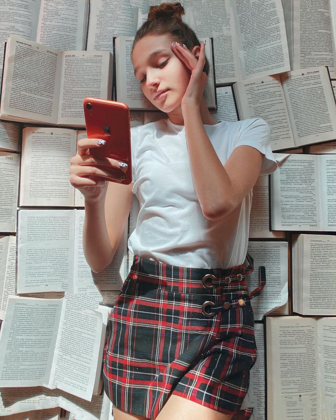 Очень важно определить хороший ракурс для съемки, чтобы лицо смотрелось стройным. Для этого можно чуть в сторону отвести подбородок