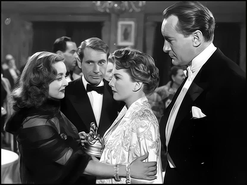 «Всё о Еве» (1950) – драма о том, как некогда легендарная звезда Бродвея Марго Чэннинг (Бетт Дэвис), а ныне вспыльчивая и любящая спиртные напитки дама, взяла под свое воспитание начинающую актрису Еву Харрингтон (Энн Бэкстер). Марго даже не подозревает о коварных планах восходящей звезды, готовой на всё ради карьеры. За свои роли Бэкстер и Дэвис были выдвинуты на кинопремию как лучшие актрисы, но «Оскар» отошел к Джуди Холлидэй за участие в фильме «Рожденная вчера».