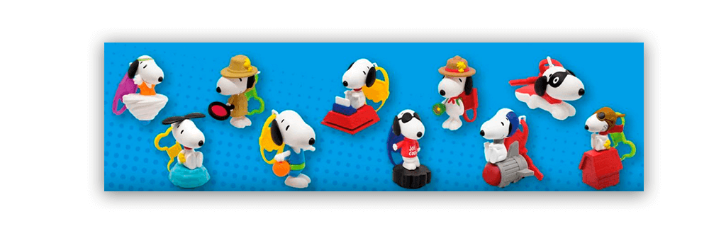 Серия из десяти очаровательных песиков Снупи включает в себя фигурки космонавта, сыщика, летчика, танцора, супергероя, сыщика, писателя, вертолетчика, исследователя и крутыша. Заказать игрушки данной серии можно даже сегодня. Они продаются в точках доставки Хэппи Мил на дом.