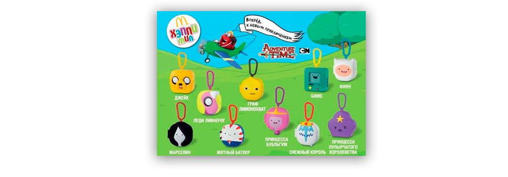 Представляет собой серию с любимыми героями сериала «Время приключений», транслируемого на канале Cartoon Networks. Продажа коллекции продолжалась практически до конца января. В серию вошли — Финн, Джейк, Мятный Батлер, Снежный Король, Марселин, Леди Ливнерог, Принцесса Пупырчатого королевства и Принцесса Бубльгум, Бимо, Граф Лимонохват. Каждая игрушка выполнена в виде брелока, который удобно носить с собой, пристегнув к рюкзаку, и представляет собой настольную игру в миниатюре.