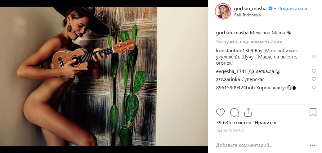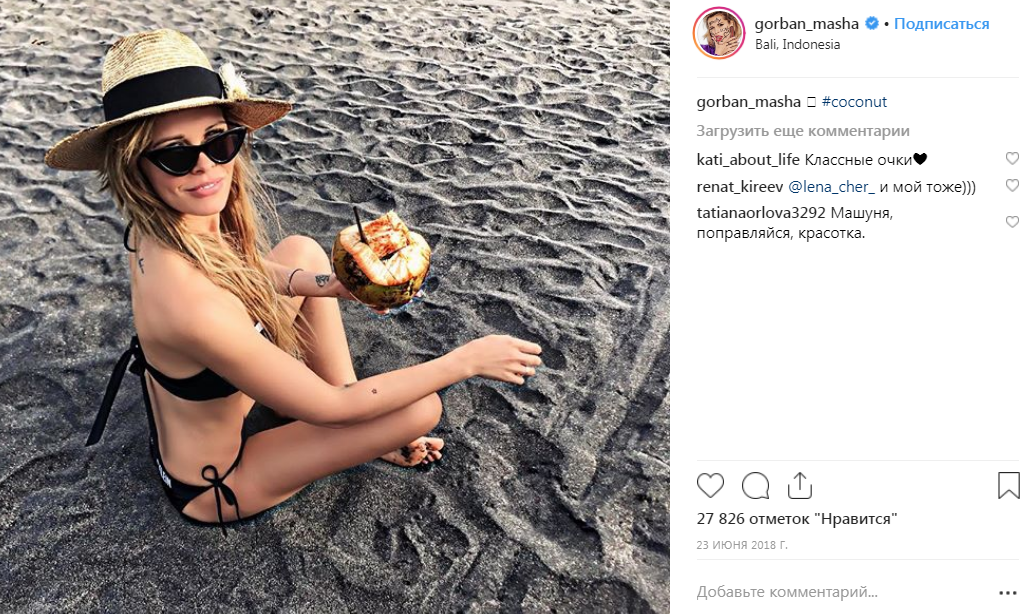 В начале лета 2018-го в Инстаграм актриса поделилась фотографиями своего отпуска на Бали. Пляжный образ Марии набрал более 25 тыс. лайков. Поклонникам понравилась стройная фигурка звезды, а также ее широкополая шляпка, солнцезащитные очки и черный купальник. Фанаты также по достоинству оценили татуировки Горбань.