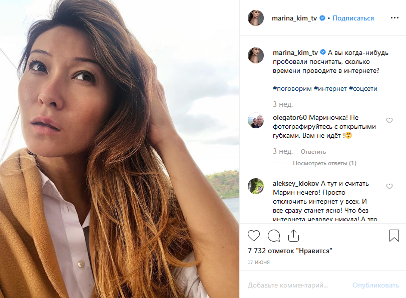 В соцсетях телеведущая зачастую подвергается резкой критике, и не только за банальные снимки в купальнике. Фолловеры считают, что «лицо Первого канала» подбирает не соответствующие случаю наряды, на видео ведет себя словно подросток. Осуждают Ким и за то, что она открыто говорит о нежелании превращаться в сумасшедшую мамочку и проводить с дочками сутки напролет. Некоторые родительские обязанности Марина делегировала няне, полагая, что с детьми надо общаться качественно, не кривить душой, не притворяться.
