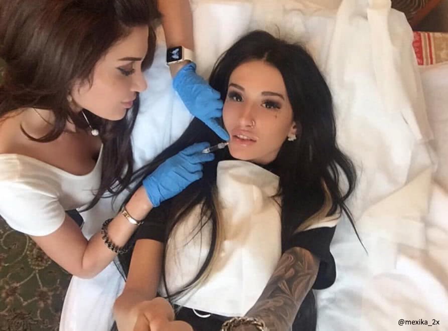 В результате Марина Мексика после пластики обладает огромным перекачанным ртом со смазанным контуром. Брюнетка систематически подкачивает оральный орган, о чем свидетельствует набухание уже сдувшихся губ. К подобным процедурам неравнодушны даже звезды мировой величины, такие как жена французского экс-президента Карла Бруни и королева красоты России Виктория Лопырева.