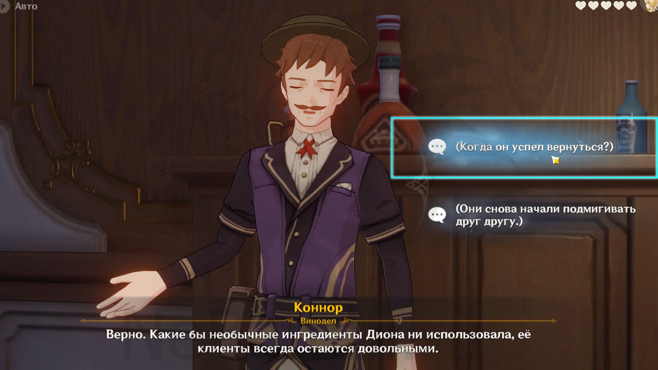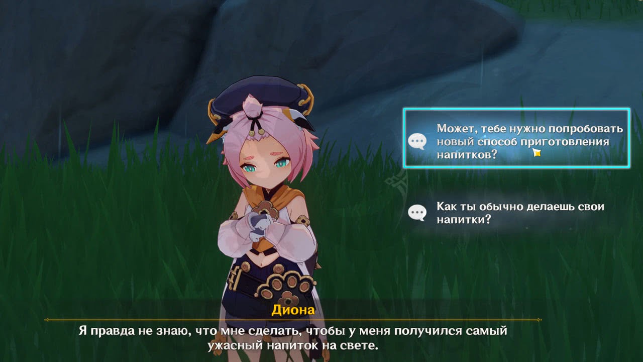 После этого вернитесь в Мондштадт и поговорите с Дионой.
