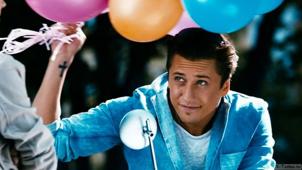 Еще один оберег расположился на запястье актера в виде черного креста. Это довольно известная религиозная татуировка, символизирующая развитие владельца в духовном плане. Такую же тату можно наблюдать у популярного актера и ведущего Дмитрия Нагиева.