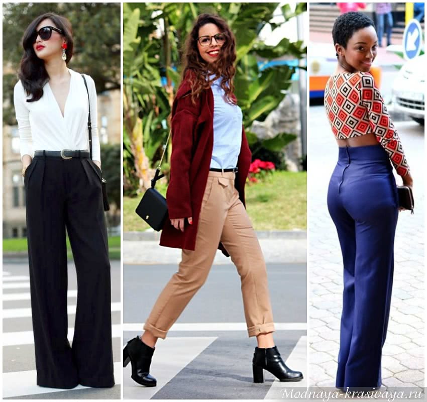 Это коварная одежда для представительниц женственного типа. Брюки лучше выбирать со средней посадкой. Слишком низкая и классическая высокая – сделают бедра еще крупнее. Исключение составляют брюки-палаццо с завышенной талией. Эта модель предпочтительнее для стройных девушек. Но в любом случае брюки не должны быть слишком узкими в нижней части ног.