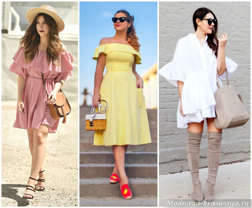Приветствуются рукава фонарики и крылышки, оборки и рюши в верхней части, широкие ремни и пояса, глубокие вырезы.