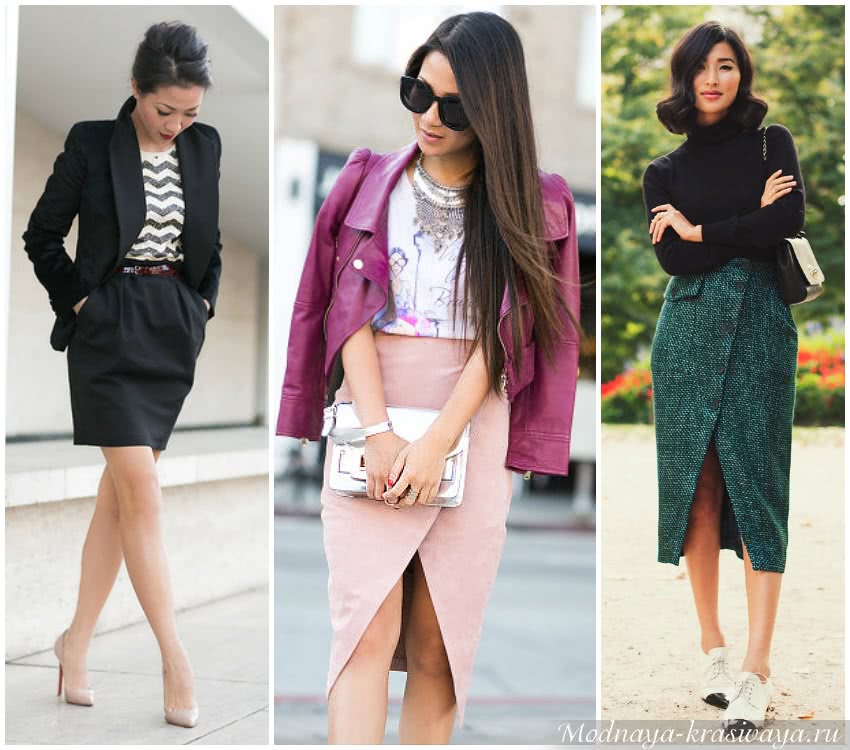 Обходите стороной прямые модели, «татьянки» в обильную сборку, складки, в крайнем случае – застроченные до линии бедер. Стройным девушкам подойдет юбка-карандаш с завышенной талией.