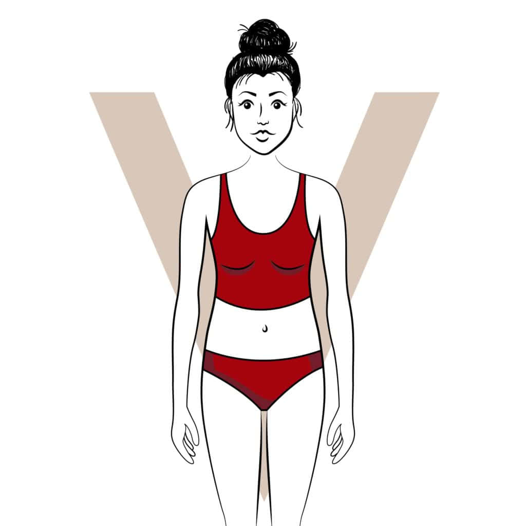 Эта форма тела имеет верхнюю часть тела больше, чем нижняя часть тела. Это связано либо с тем, что округлость бюста больше, чем округлость бёдер (размеры чашек бюстгальтера C, D, DD), либо с тем, что фигура имеет широкое/широкое плечо с узким бедром.