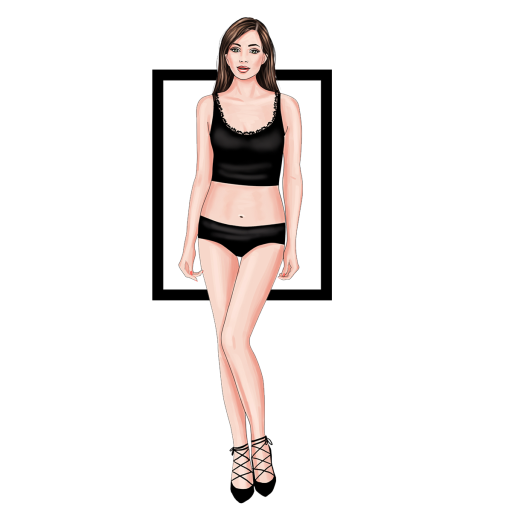 В этой фигуре тела бюст и бедра почти одинаковы, а разница между округлостью бёдер и округлостью талии не так уж велика (менее 22 см), что приводит к прямому столбчатому рисунку без особых кривых. Если у вас есть эта фигура, вы можете иметь спортивную фигуру.
