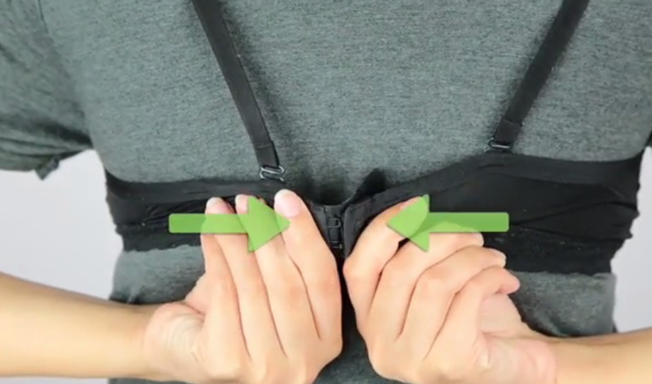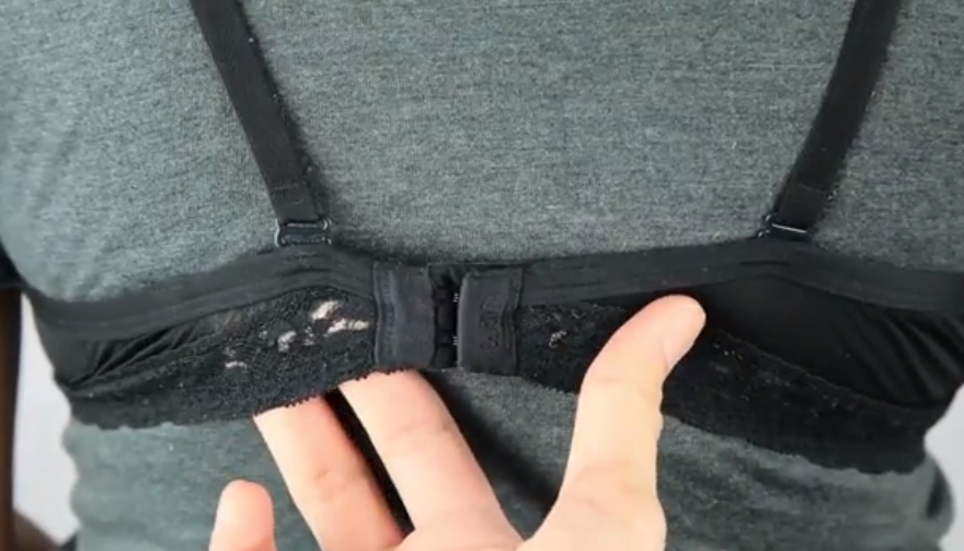 - Средний палец, безымянный, мизинец просунуть под ту часть бюстгальтера, где находится застежка. Так они будут зафиксированы и не станут мешать.