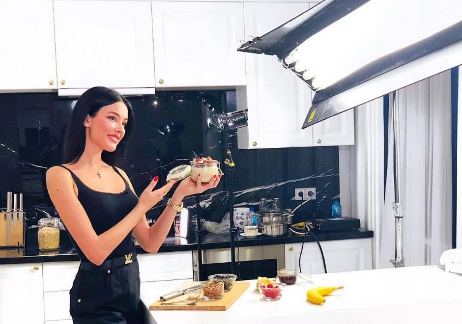Так, вскоре появилась еще одна фотосессия, на которой девушка позирует мокрая, в полупрозрачном нижнем белье. При этом она держит в руке нож и овощи. Эротическо-кулинарные снимки собрали много восхищенных комментариев.