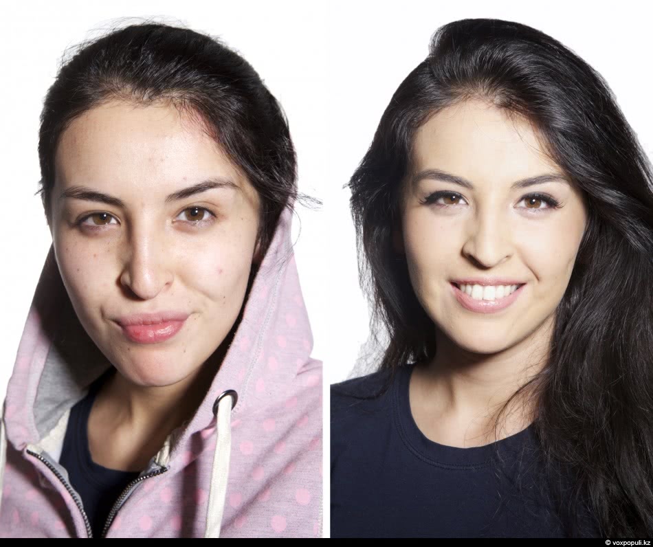 Пишет voxpopuli: Идея этого фоторепортажа пришла в голову Канату Бейсекееву, когда однажды он увидел свою подругу без макияжа и не узнал ее. В настоящее время make-up – это серьезное оружие, которым девушки (и не только девушки), пользуются ежедневно. Мы решили посмотреть на 10 героинь с макияжем и без, и сравнить – насколько он их меняет. (10 фотографий)