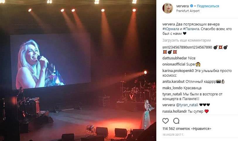 На сегодняшний день Вера Брежнева одна из самых популярных и востребованных певиц и актрис на всем постсоветском пространстве. На нее мечтают быть похожими миллионы девочек-подростков, а мужчины готовы носить ее на руках. Ververa – инстаграм аккаунт Веры наполнен фотографиями со светских раутов и вечеринок, на которых можно встретить и всемирно известных модельеров Дольче и Габбана, и известных рок и поп звезд российской и зарубежной сцены, таких как Дима Билан, Максим Галкин, Маским Зеленский, гениальным режиссером из Голливуда Вуди Алленом. Ее гонорары – это баснословные суммы денег, а посещение концерта Веры Брежневой заменяет три месяца психотерапии.