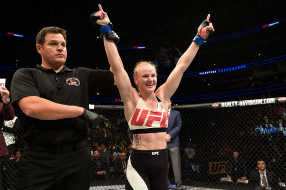 Далее был отменен бой с Йоанной Енджейчик. Бывшая доминирующая чемпионка минимального дивизиона не дала согласия на перенос даты встречи. В конце 2018 состоялась встреча на ринге обеих соперниц. Валентина стала первой чемпионкой женского наилегчайшего дивизиона в истории UFC, после решения судей о победе над Енджейчик.