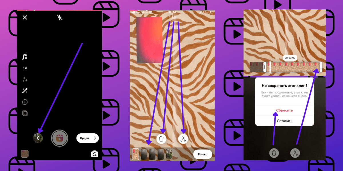 Простенький монтаж клипов в Reels Инстаграма