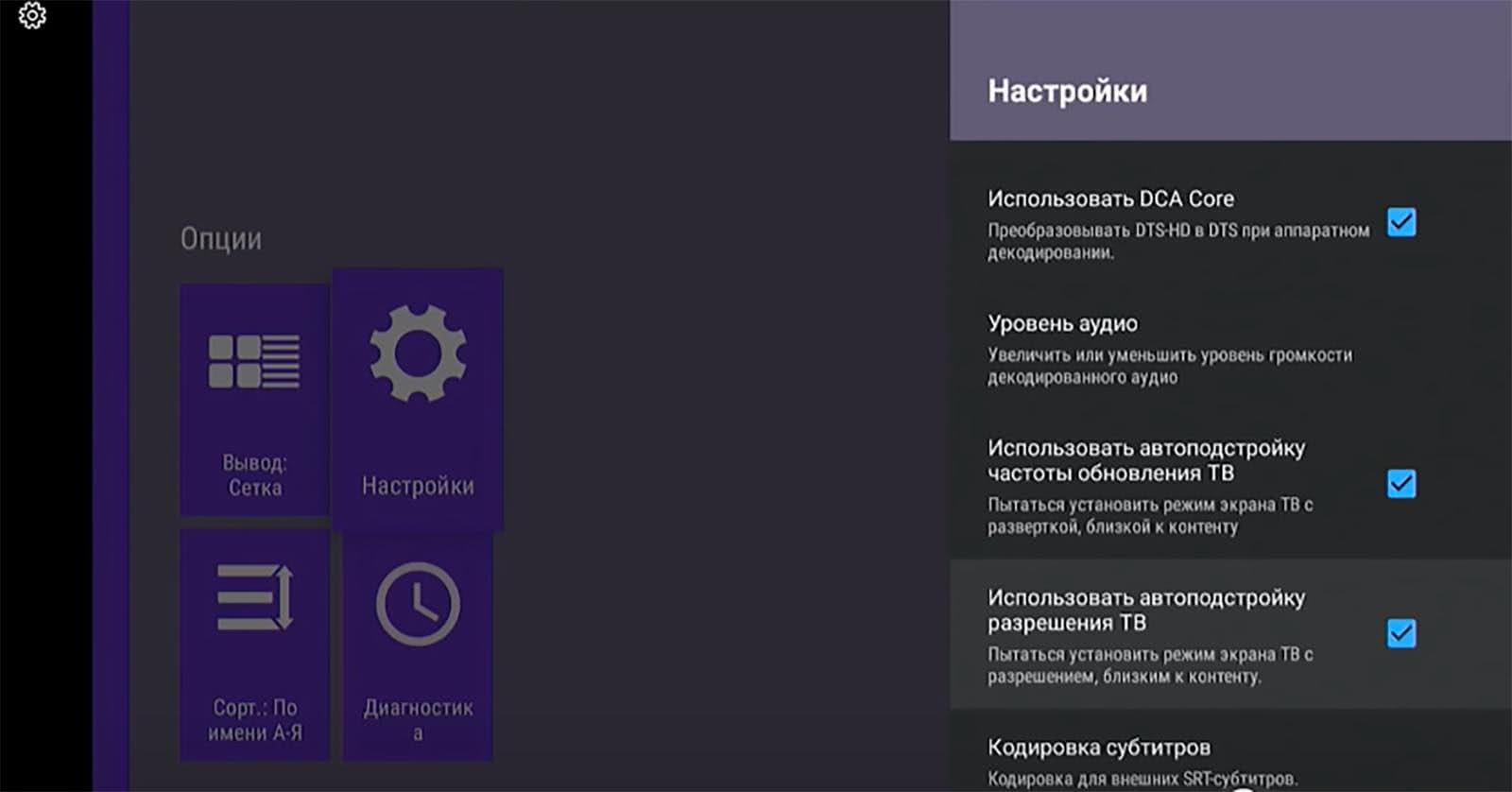Включение Auto Frame Rate в популярном плеере Vimu на Android TV