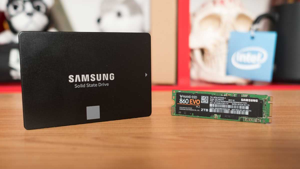 Оптимальный вариант — твердотельный накопитель на 1 ТБ. Подойдет и SATA, поскольку в играх высокоскоростные M.2 не предлагают принципиальный прирост частоты кадров. Надежная и недорогая модель Samsung 860 EVO продается за 10 тысяч рублей (135$). Производитель заявляет огромный рабочий ресурс — 600 TBW и скорости до 550 МБ/с.