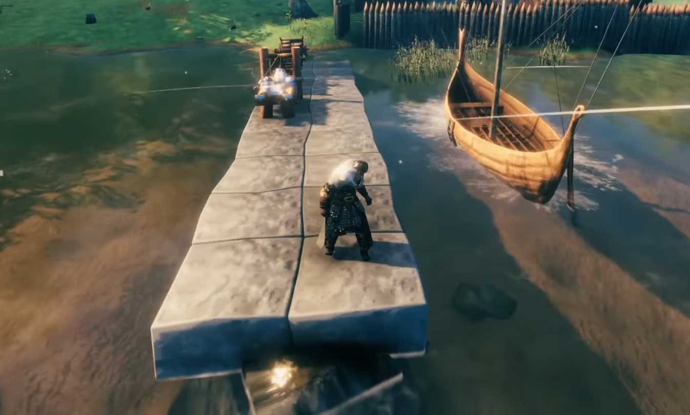 Когда выровняете грунт, запаситесь большим количеством камня и дерева. Чтобы упростить процесс перемещения ресурсов из одной точки к области, где вы строите док, можете создать Тележку. Для крафта (с помощью Верстака) вам потребуются: