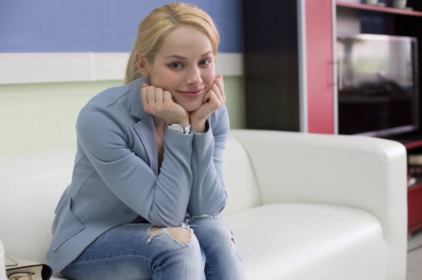 Голубоглазая блондинка со спортивной подтянутой фигурой хорошо смотрится в качестве фотомодели. Ее любит не только сцена, но и камера.